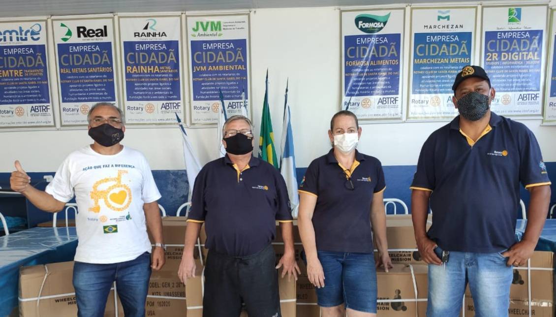Doar cadeira de rodas para melhorar a mobilidade das pessoas que necessitam é um dos projetos que o Rotary Club de Santa Isabel do Ivaí, desenvolve há vários anos (Você conhece alguém que precisa de uma cadeira de rodas? Fale com um dos nossos companheiros!), no projeto mais recente elaborado pelo clube, que foi iniciado pelo presidente Marcos José dos Santos - Gestão 2020/2021 e está sendo conduzido pelo atual presidente Roger Alvarenga - Gestão 2021/2022, o clube foi contemplado com várias cadeiras de rodas de tamanhos diversos, que foram doadas e estão beneficiando pessoas dos municípios de Santa Isabel do Ivaí e Santa Mônica.